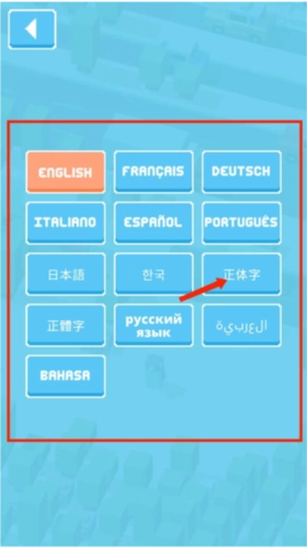 3、进入语言选择界面,包括英语、法语、日语、汉语等语言,选择【正体字】即可改中文了。