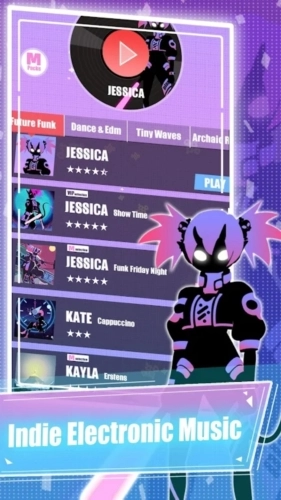 全球首款实时指尖发音电子音乐游戏缪斯计划由专业音乐制作人创造,结合全新指尖发音玩法,拥有充满动感及跳跃性原创电子气息的音乐,每一个音符会被实时激活,节拍和节奏取决于点击时机,推荐游戏时使用耳机。
