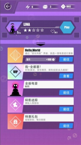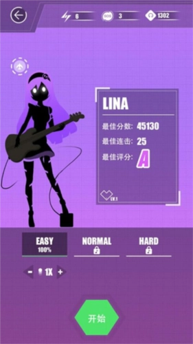 7、进入游戏后,初始阶段通常只有一条轨道,用手指点击轨道上的位置即可操作。当方块移动到横线上的♦标记处时,点击一下就行。随着游戏节奏推进,轨道会逐渐增加到3条甚至更多,这时需要手指把控好节奏。游戏里的歌曲都很好听,戴上耳机体验会更棒。