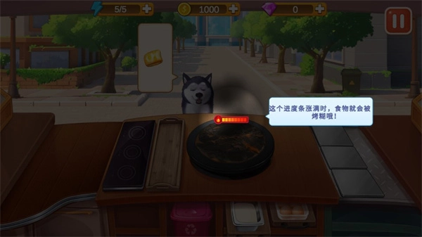 4、图里那只像吉祥物似的哈士奇,它不只是小店的首位“客人”,还是能听懂人话的神奇狗狗,我们得给它做一份煎饼。