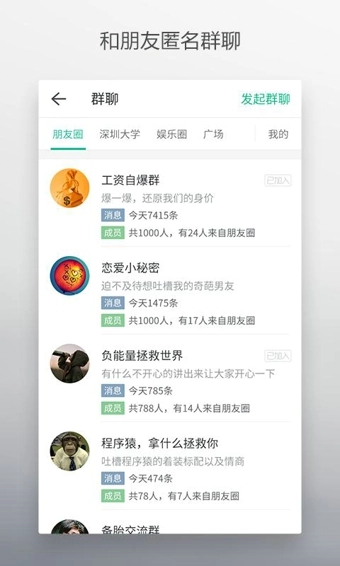 实时互动功能:支持实时匿名聊天,还具备阅后即焚、群主召集等特色功能。