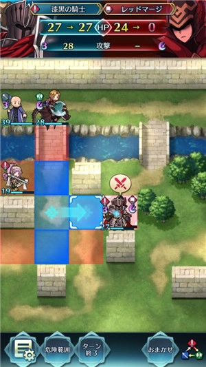 小黑一刀用黑月光砍倒了拓海,里夫上前奶了一口,奥利薇亚随即移动离开。纳西恩向左挪了一格,准备硬扛飞刃狗粮。敌方回合里,两个骑兵先后撞上来送了命,日乃香试图色诱纳西恩,结果反被打残,进入了恐慌状态。后面的红剑和红法因为卡位,没能补上最后一刀。