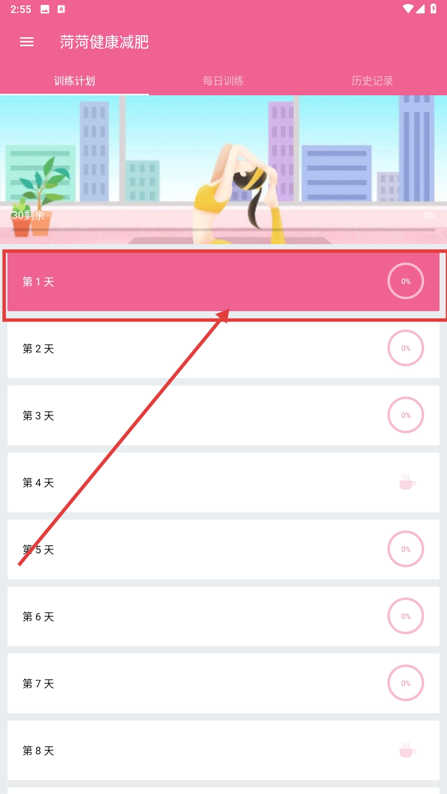 打开应用,点击【第1天】。
