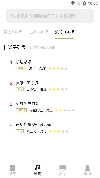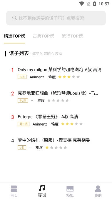 3、支持按难度筛选,点击筛选按钮可选择入门、初级、中级、高级,精准查找符合自身水平的曲谱。
