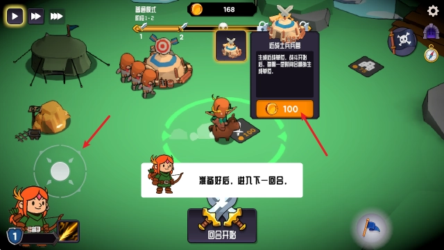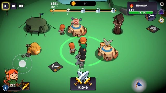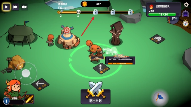 准备就绪后点击回合开始,即可进入战斗阶段,右侧还能释放英雄技能。