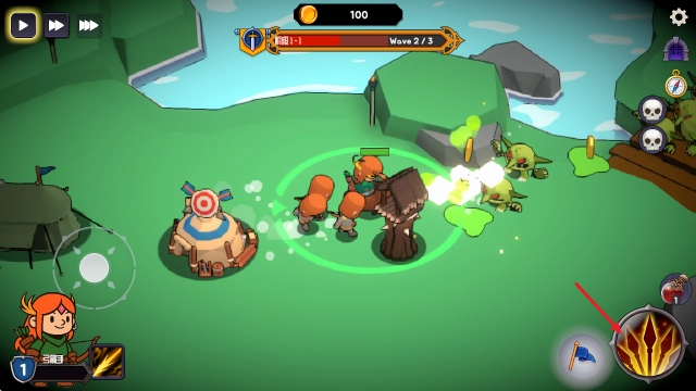 游戏启动后,拖动左侧摇杆来操控英雄移动,到达指定地点即可开展建设。