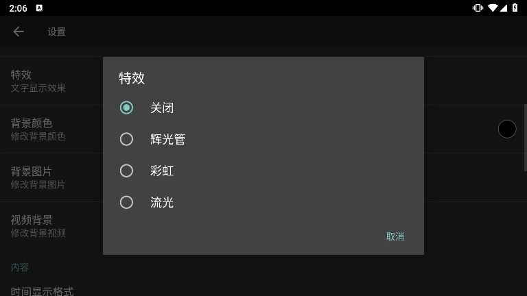你在设置页面中可以设置文字特效。
