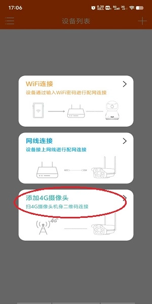 接着点击第三个“添加4G摄像头”,扫码摄像头机身二维码进行连接;
