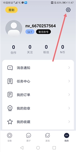 如果用户需要更换车主绑定可以前往【我的】页面中点击右上角的设置图标(下图红色箭头所指区域)