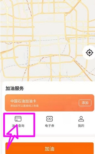 1、进入中国石油,点击【添加加油卡】;
