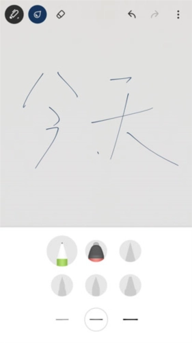 4、点击左上角笔标志,你可以选择不同的笔,以及它们的粗细,以此再上面进行绘画以及素描;
