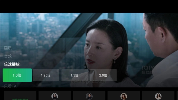 1、进入视频播放键后,点击遥控器的ok键暂停播放,底部就会出现下一集、画质、音效、倍速等功能;