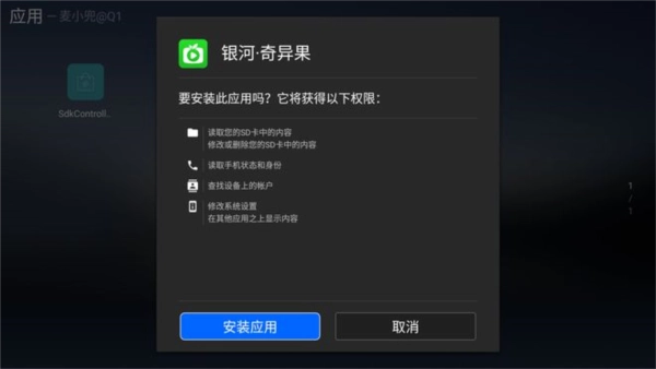 3、打开U盘后,找到要安装的奇异果TV安装包,点击APK文件,选择【安装应用】;