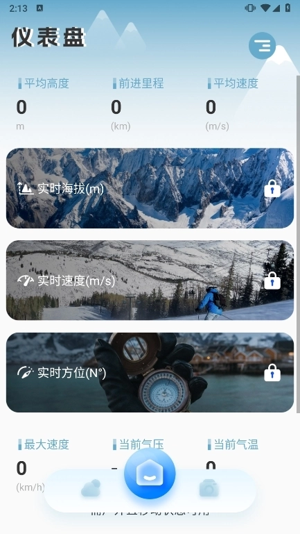 【仪表盘】通过手机GPS或传感器准确测量海拔、速度、方位等数据,随时查看里程数和平均速度。