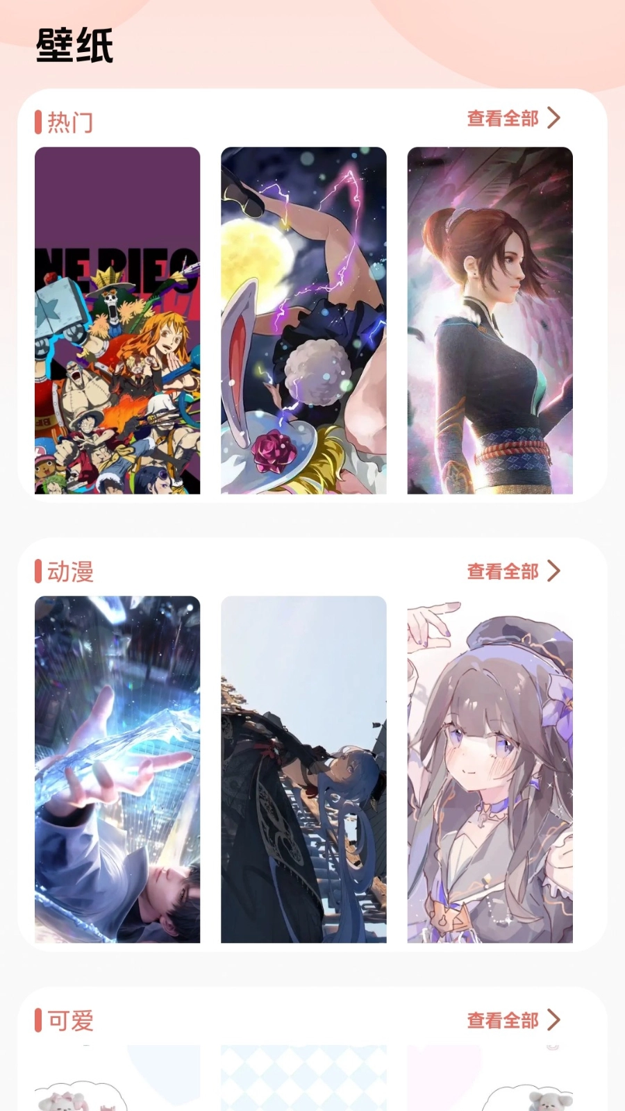 可以获取平台提供的手机壁纸,用户以后就可以在这里自由更换不同的手机壁纸了;