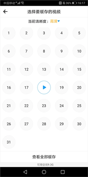 4、选择详细页面中的按钮还可以对剧集进行缓存到本地离线观看