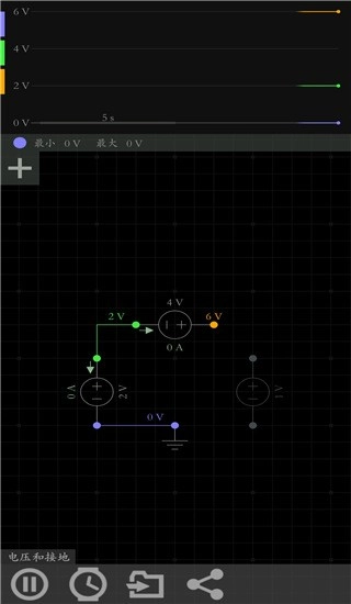 动画电压波形和电流流、模拟控制旋钮调整电路参数、自动布线、示波器、无缝DC和瞬态仿真、单播放/暂停按钮控制模拟、保存和加载的电路原理图、移动从地面建造的仿真引擎、直观的用户界面、没有广告。