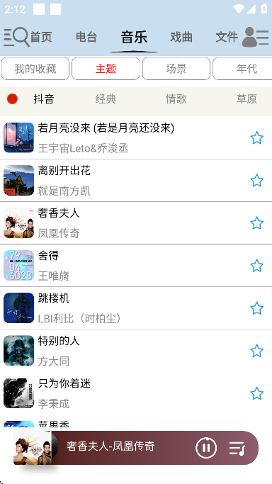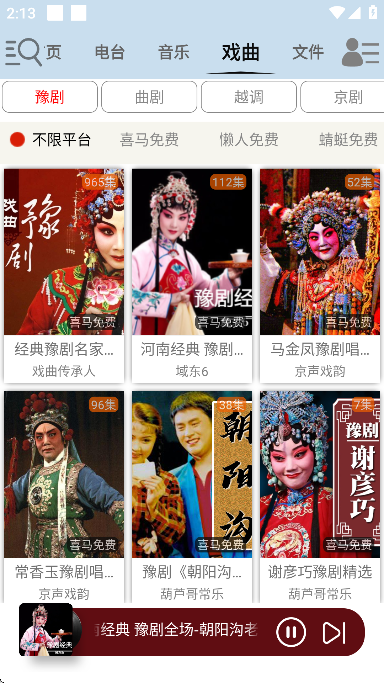 5、在昊昊听书的最上方,可以选择不同的资源进行收听,包括电台、音乐、戏曲、电视等。
