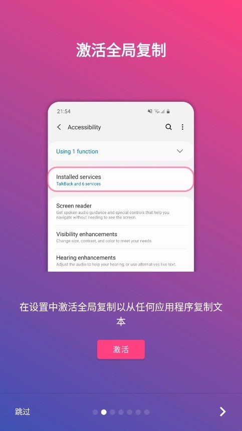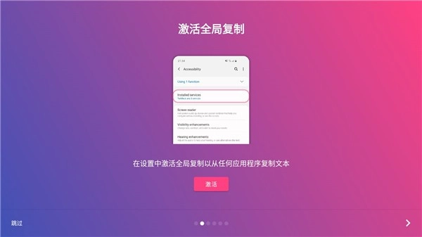 2、开启辅助服务激活全局复制模式,轻松选择各种应用中你想复制的文本。