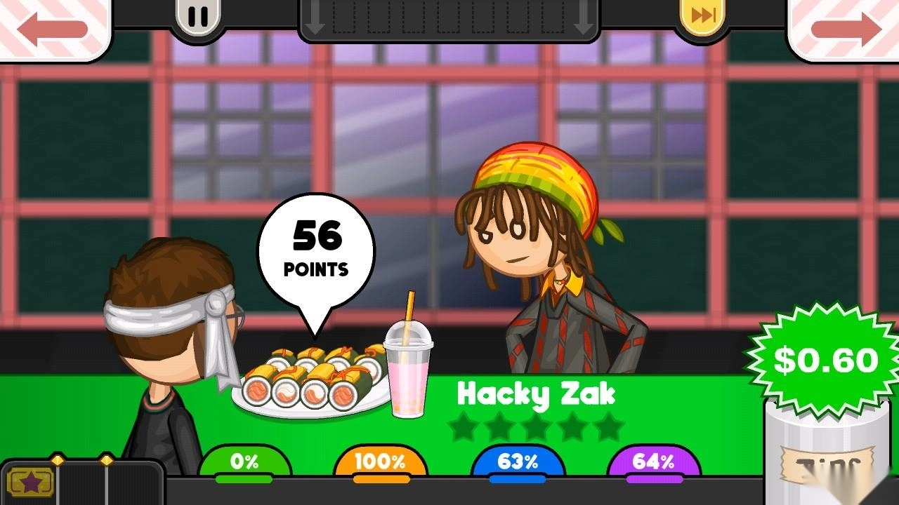 寿司制作完成后,顾客能够对它进行评分,评分越高,顾客的消费金额就越大。自己费心费力做出来的成果能得到他人的认可,这本身就是一件非常棒的事。