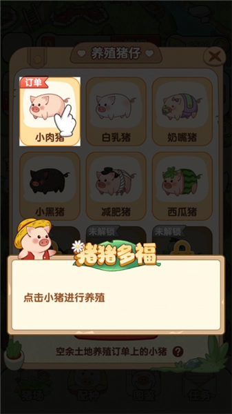 游戏会定期发布订单任务,玩家需要按照订单要求养殖对应的小猪。