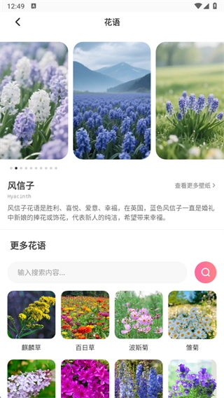 3、点击“花语箴言”即可查看各类花卉的花语,直接搜索花名就能获取你想了解的花的花语。