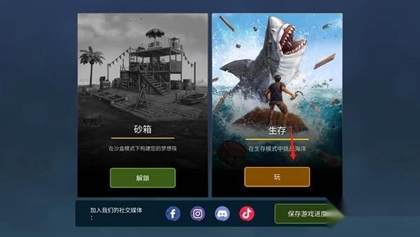 打开海洋游猎生存中文版,这里为玩家介绍生存模式的玩法,点击“玩”即可开始。