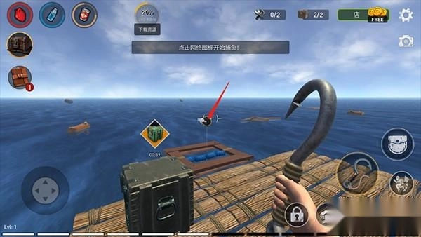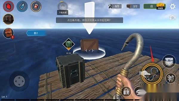 在海上遇到物资,使用钩子将其从水中拉出来;