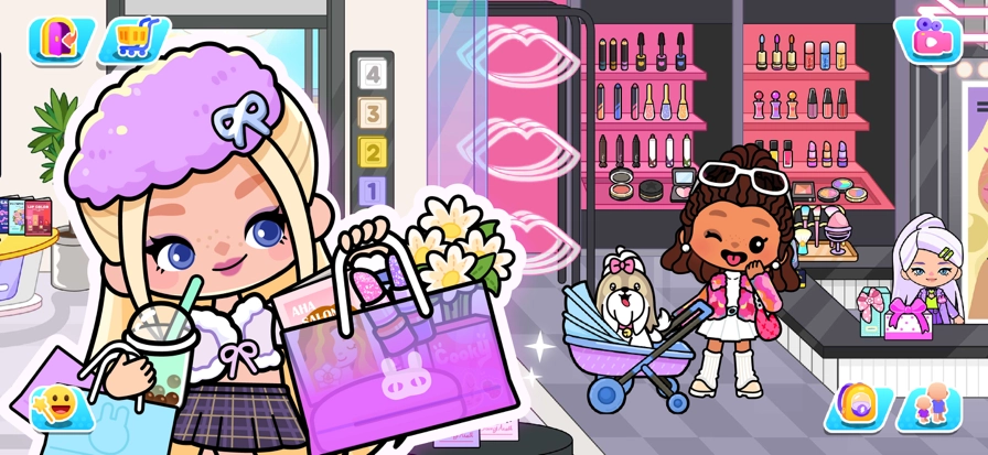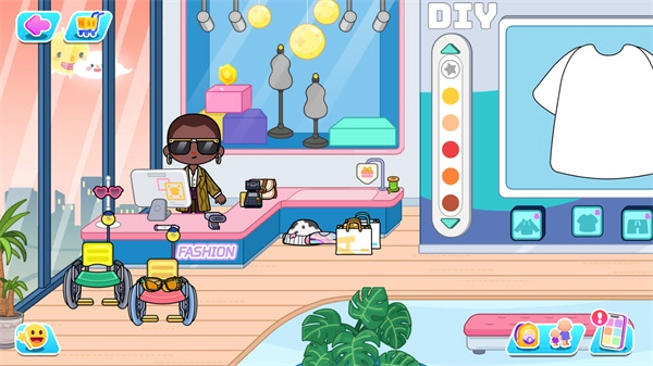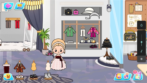 这款游戏采用经典的卡通画风,玩起来趣味十足,你可以随时和NPC进行简单互动,还能进入房间自由设计。