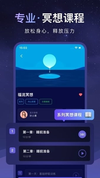支持冥想板块,提供了丰富的冥想系列,包括:7 章节舒缓冥想、6 章节基础冥想、7 章节专注冥想、7 章节感恩冥想、7 章节幸福冥想、7 章节正念冥想。