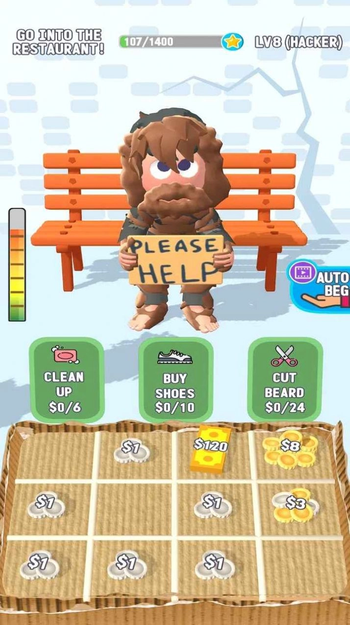《乞讨的生活》(英文名Begging Life)是一款3D卡通风格的生存冒险游戏,玩家将在其中体验乞讨者的日常。游戏中,你扮演一位背井离乡、失去经济来源的乞讨者,需依靠乞讨、搜寻食物与安全居所等方式维持生存,每一个选择都将直接左右游戏的发展走向与最终结局。
