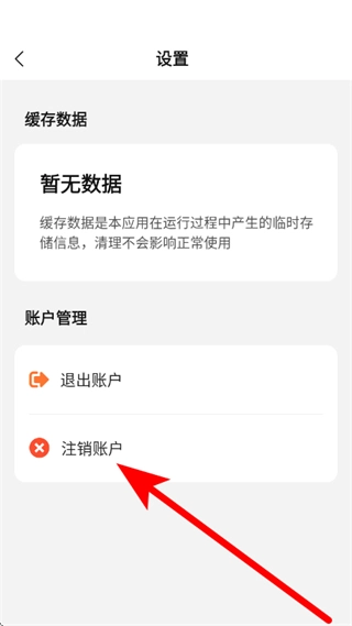 在设置页面,账户管理板块,点击注销账户。