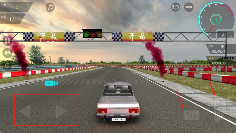 点击加速键让赛车加速,点击刹车键则让赛车减速。