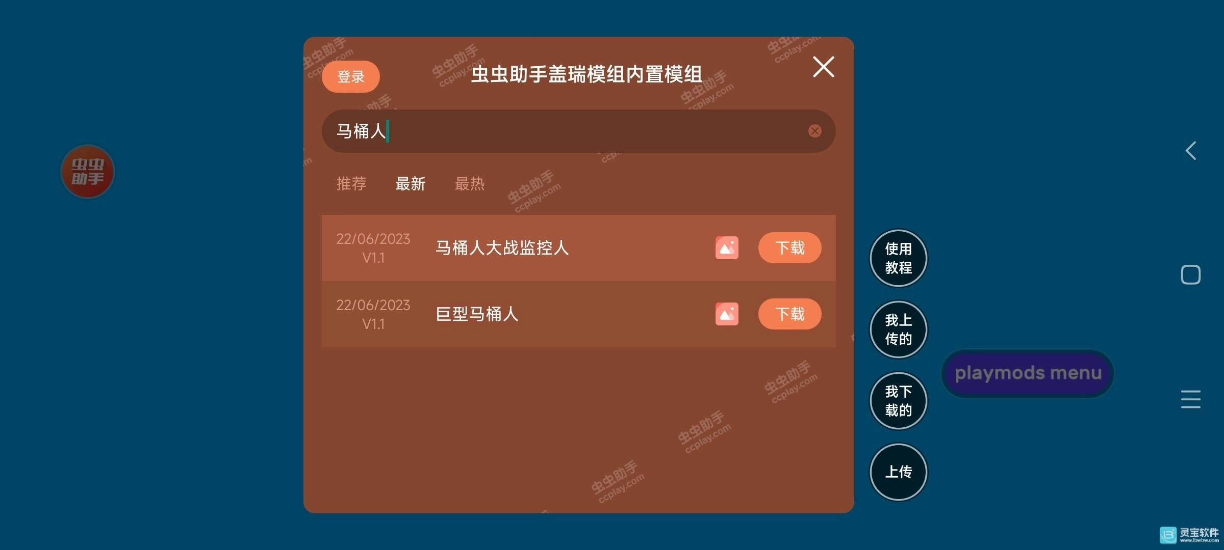 点击红色的虫虫助手按钮,然后在搜索框搜索马桶人。