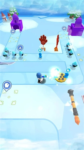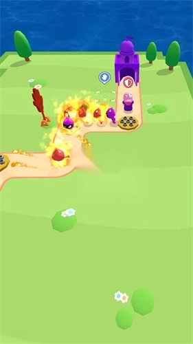 这款游戏采用塔防战斗模式,敌人会顺着特定路径朝玩家基地发起进攻,玩家能够操控角色进行攻击。
