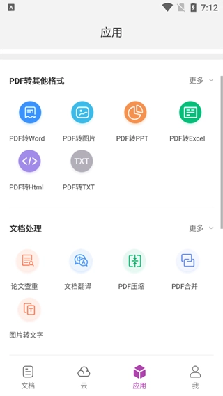 除此之外,福昕PDF编辑器App还具备PDF与Word、Excel、PPT等格式相互转换的功能,同时还拓展了论文查重、翻译等专业文档处理方面的功能。