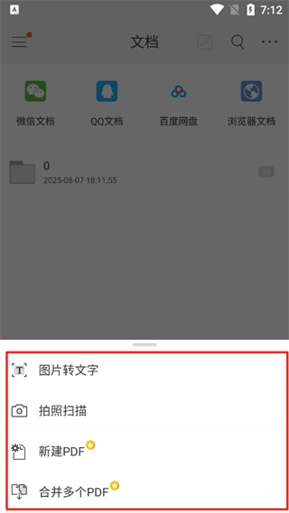 可以添加【图片转文字、拍照扫描、新建PDF、合并多个PDF】等实用文档处理功能。