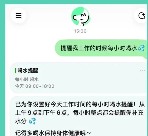 她还会在聊天边栏展示小美今日的待办事项,并准时提醒你饮水。