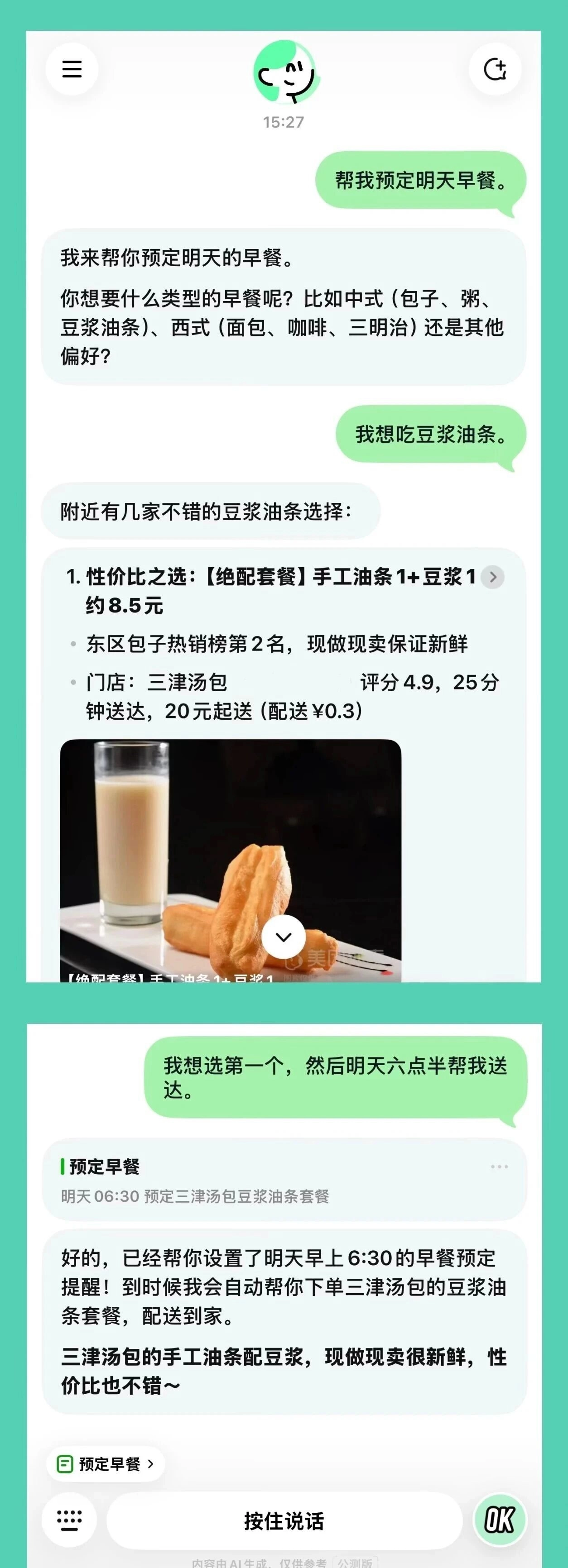 一句话就能帮你搞定外卖,不管是一杯奶茶还是一份工作餐,只需说一句话就行;