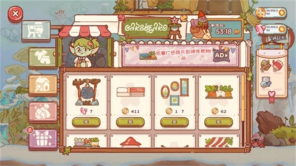 在主界面里,进入市场,用金币或者钻石解锁全新的家具和服装。