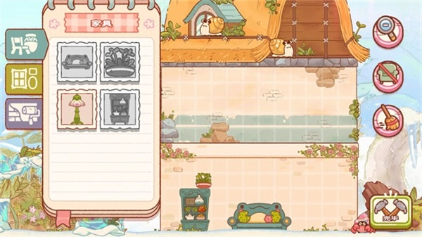 点击界面底部的椅子图标,即可对房间进行自由改造,摆放各类家具与装饰品。
