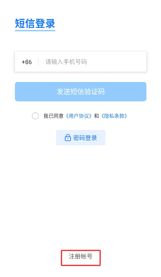 启动之后,在登录页面点击“注册账号”按钮,即可进入账号创建界面。