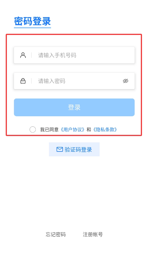 完成注册操作后回到登录页面,输入注册时使用的手机号和设置的密码,就能顺利登录系统了。