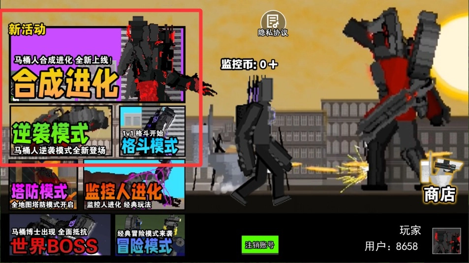 合个监控人这款游戏真的超有意思,把策略对战玩出了新花样!只要把两个同款监控人合成,就能直接升级成更强的战士!打怪能爆出装备,直接往身上穿戴就行,武器从机枪到激光炮随你搭配;地图上敌人到处乱窜,得赶紧派监控人去堵截。合成得越多就越厉害,技能也会越学越多,慢慢就能组建一支超强小队啦!