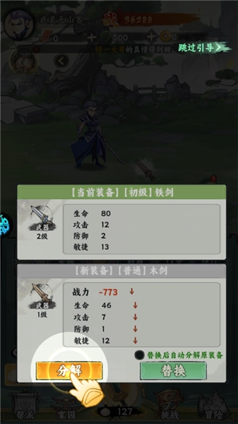 如果遇到用不上的装备就分解掉可以获得铜钱和经验,
