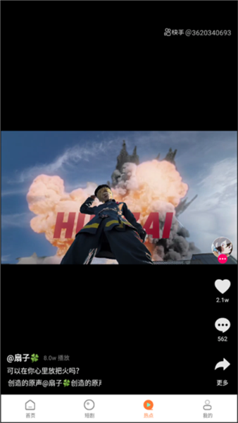 3、在热点界面下,我们能够各大短视频平台上的各种热点短视频。