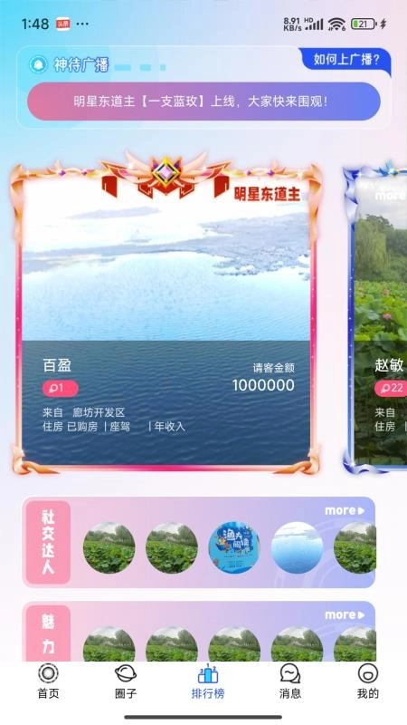 在排行榜页面,你可以浏览到不少社交达人与魅力达人,能自主查看他们的信息并进行交流。