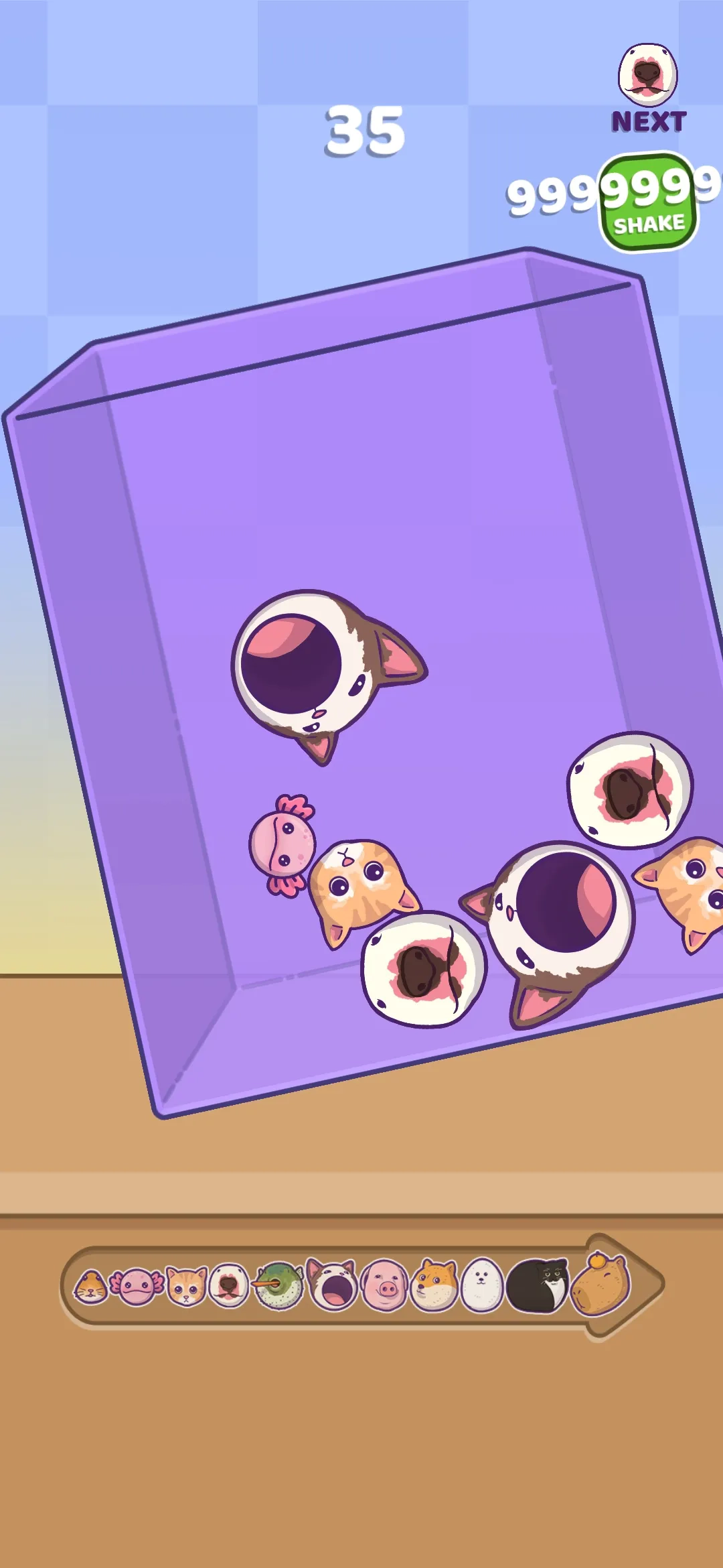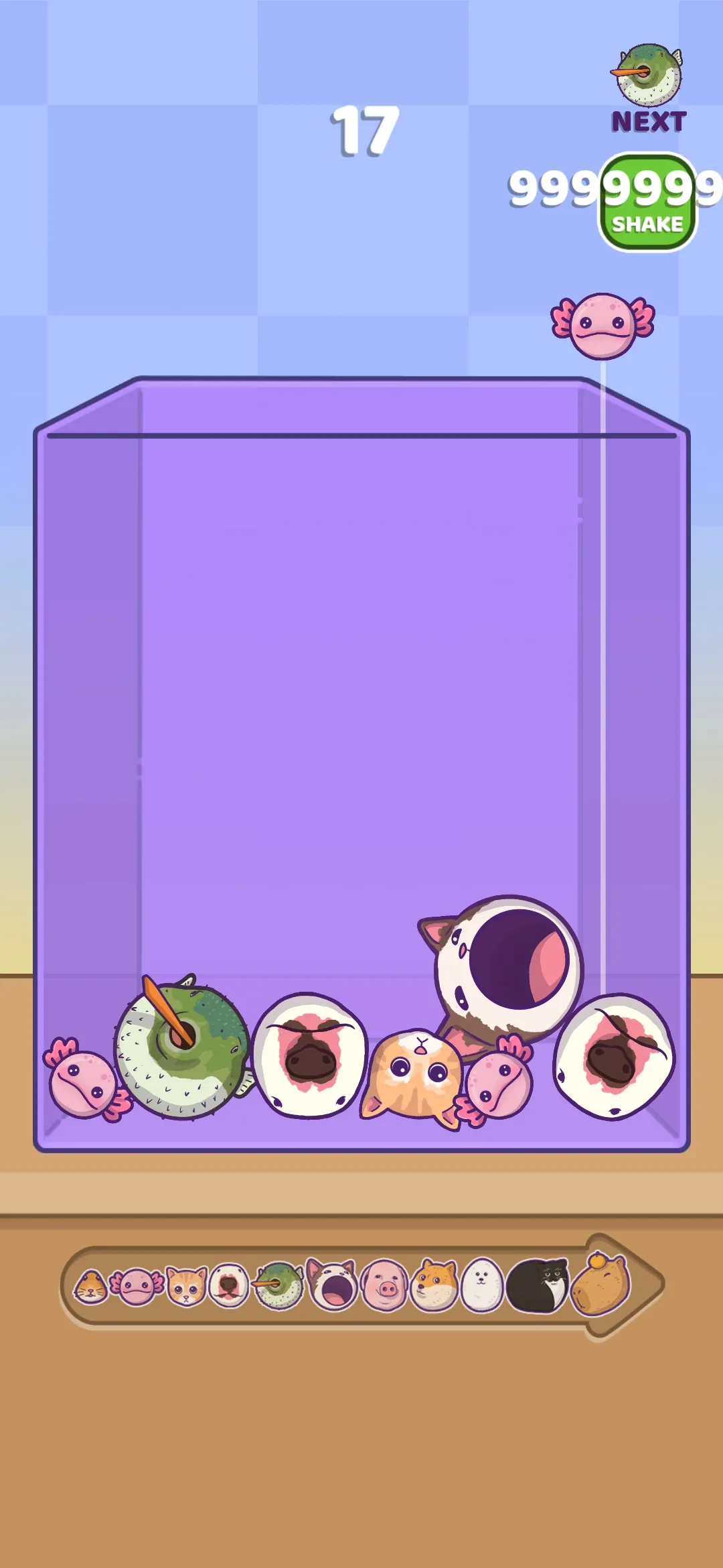 不同类型的动物持续掉落,相同的动物融合成体型更大的动物。