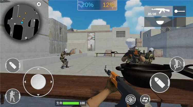 游戏里除了传统枪械,还加入了饭碗、饭勺、吹风机、剪刀这类另类武器,玩家可以在不同模式中用这些武器展开战斗。