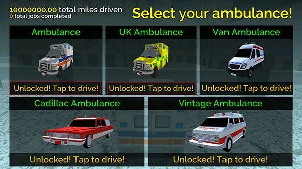 游戏已开放全车辆使用权限,在急诊中心车库里,你可以自由挑选各类专业救护车型。